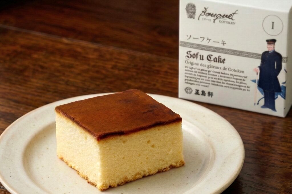 1879年(明治12年)創業。開港地・函館で西洋料理とともに洋菓子づくりを広めてきた老舗です。外国人客をもてなす中で生まれた焼き菓子やケーキは、バターや卵を使った新しい味わいとして、やがて市民にも親しまれるようになりました。代表菓子の「ソーフケーキ」は、長崎のカステラを手本に考案されたとされる一品で、外国航路の船内などでも販売されて評判に。現在は復刻され、五島軒を象徴する洋菓子として親しまれています。